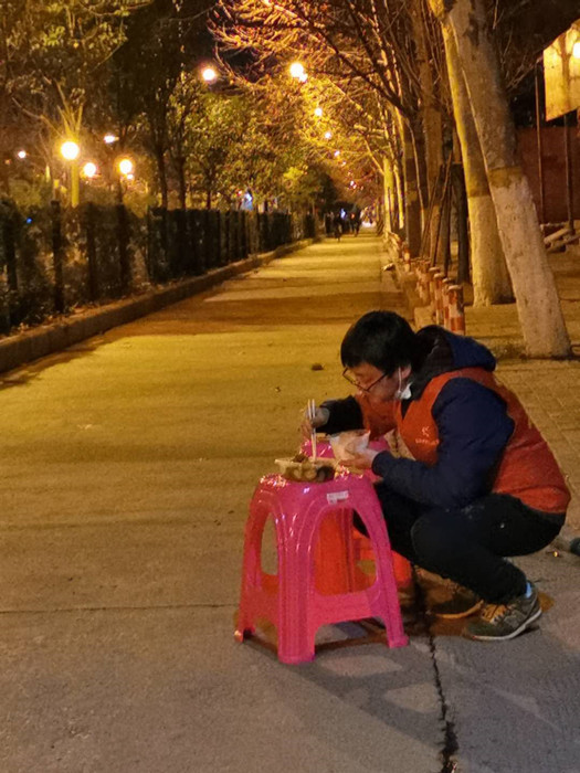 “剛開(kāi)始時(shí)有些居民還不理解,不愿意跟我們交流溝通。慢慢地大家也都理解了,現(xiàn)在基本都非常配合我們的工作。”除了執(zhí)勤守崗,突擊隊(duì)員們還擔(dān)當(dāng)起了政策講解員,甚至有些上了年紀(jì)的困難居民出不了門(mén),買(mǎi)不著米面油等都直接來(lái)找路邊的“紅袖章”,突擊隊(duì)員們還兼任起了“后勤員”“聯(lián)絡(luò)員”,全方位保障居民群眾的日常生活,而突擊隊(duì)員們的一日三餐則是“蹲”在路邊匆匆解決。