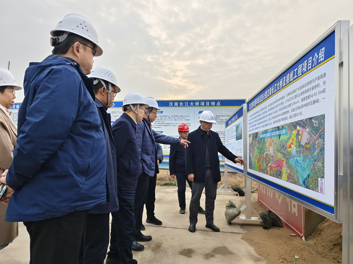 雷鳴一行先后參觀了武漢至松滋高速公路武漢段水紅樞紐互通施工現場、武漢都市圈環線高速公路漢南長江大橋及接線工程北岸錨錠施工現場,漢南橋、武松項目公司總經理林文結合兩大項目2024年的建設進展情況、“平安百年品質工程”創建情況、近階段路域環境整治情況、春節前后工作安排情況、2025年生產計劃及相關保障措施情況等方面進行詳細匯報。